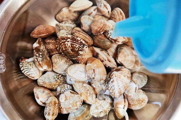 Cho thêm vài giọt dầu ăn vào nước ngâm ngao sẽ thấy hiệu quả nhả sạch cát rất nhanh chóng