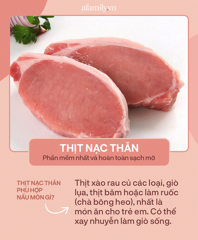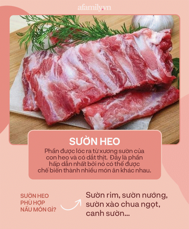 Mỗi phần thịt của con heo sẽ có đặc điểm khác nhau đồng nghĩa với việc nó sẽ phù hợp để chế biến các món khác nhau. Chị em tham khảo những mô tả sau đây để áp dụng trong việc đi chợ và chế biến món ăn cho gia đình thuận tiện và dễ dàng hơn nhé!