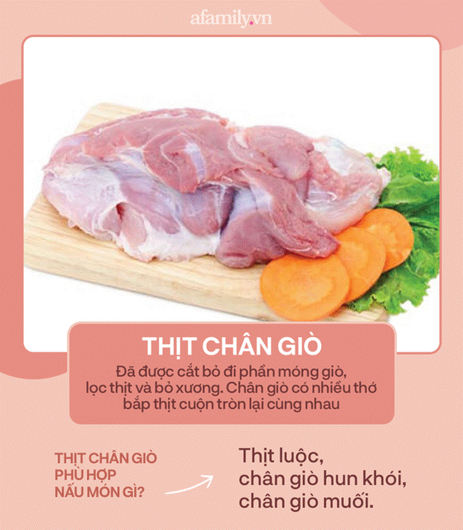 Thịt chân giò có nhiều thớ bắp thịt cuộn tròn lại cùng nhau. Đây là phần thịt nhiều người thích ăn.
