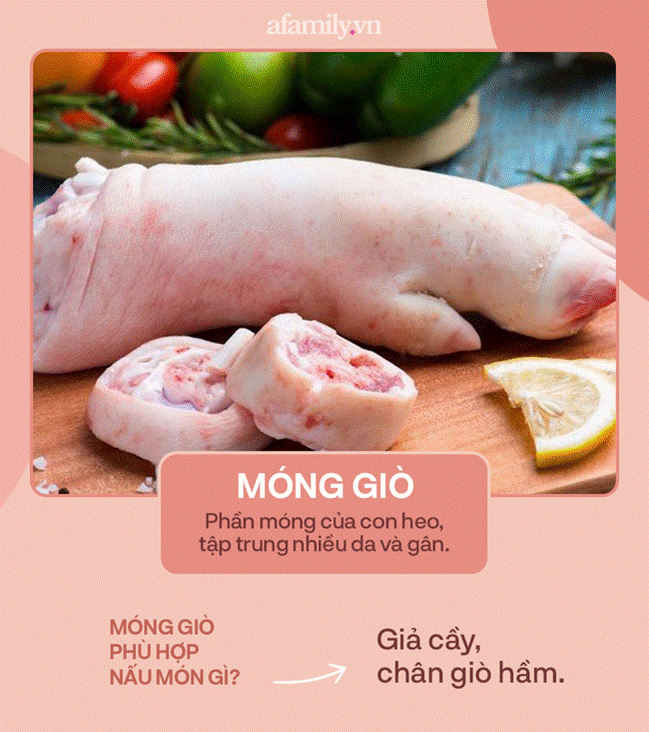 So với chân giò sau, phần chân giò trước khi quan sát sẽ thấy có dáng, đẹp và rõ hơn ở phần móng giò. Vì là bộ phận hoạt động nhiều hơn nên thường nhiều gân hơn. Ngoài ra, thịt của chân giò trước cũng mỏng và ít hơn chân giò sau. Ưu điểm của thịt chân giò trước là ngọt hơn, do đó, nếu chế biến các món hầm, luộc, chị em nên chọn phần này. Phần chân giò sau sẽ có nhiều bắp thịt hơn, có mỡ, thịt không có vị ngọt như chân giò trước. Tuy nhiên, ưu điểm của chân giò sau là có nhiều thịt và giàu giá trị dinh dưỡng hơn chân trước.