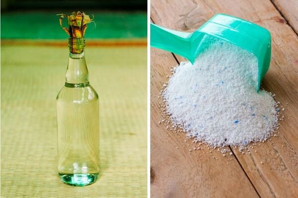 Rượu không chỉ dùng uống, nấu thức ăn, khử mùi đồ ăn,... mà nó còn là một chất giúp tẩy mốc quần áo. Bạn chỉ cần pha nước và rượu tỷ lệ bằng nhau, ngâm chúng trong 2 tiếng. Hỗn hợp này sẽ giúp diệt khuẩn và nấm mốc trên quần áo trắng hay màu. Rượu sát khuẩn tốt nên sẽ giúp quần áo của bạn sạch hơn.