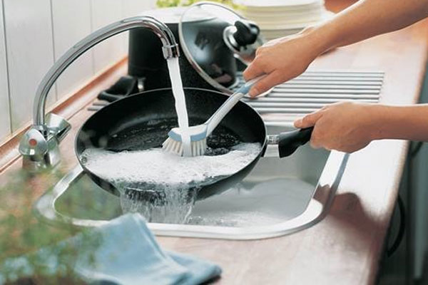 Khi xoong nồi bị cháy, có thể lấy nước rửa bát đun ở lửa lớn. Khi nước sôi, vặn nhỏ lửa đun trong vòng 10 phút rồi tắt bếp, đổ nước rửa bát ra ngoài. Sau đó, dùng một chiếc thìa để cạo sạch phần cháy và đánh nhẹ bằng cọ sắt.