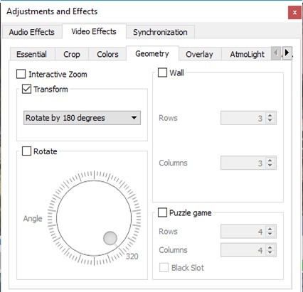 Ở đây bạn có thể điều chỉnh hướng của video theo hai cách. Cách dễ nhất để xoay video là chỉ cần nhấp chọn hộp Transform và sau đó chọn Rotate by 180 degrees từ trình đơn thả xuống. Như đã đề cập ở trên, video sẽ chỉ thay đổi trong VLC. Nếu bạn mở video trong một chương trình khác, nó vẫn sẽ bị ngược chiều.