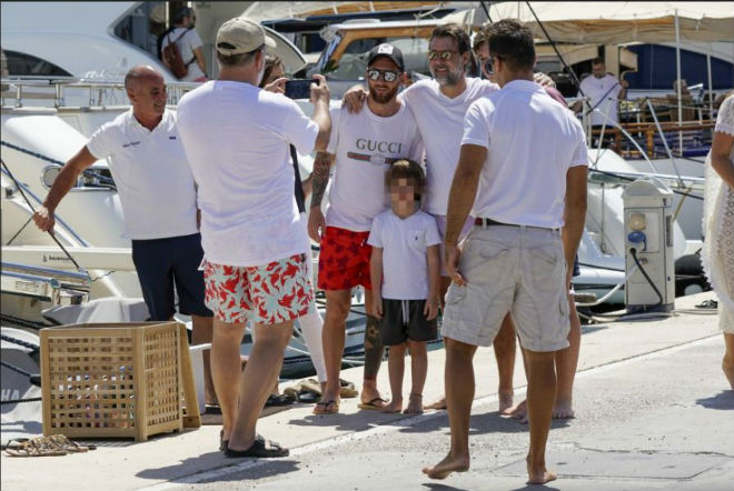 ... và chụp ảnh cùng cậu con trai và bạn bè thân mật ở bãi biển Ibiza