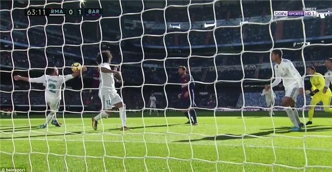 Chỉ 10 phút sau, Carvajal dùng tay cản bóng trong vòng cấm nhận thẻ đỏ trực tiếp rời sân, kèm theo đó là quả phạt đền cho gã khổng lồ xứ Catalan.