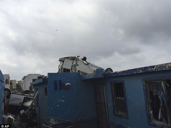 Những bức ảnh chụp tại hiện trường cho thấy nhiều ngôi nhà bị phá hủy, bên cạnh là những chiếc xe bị giật tung nóc và bị cuốn phăng lên nóc nhà hay dựng đứng. Một chiếc xe buýt lớn cũng bị hất tung nằm nghiêng trên đường.
