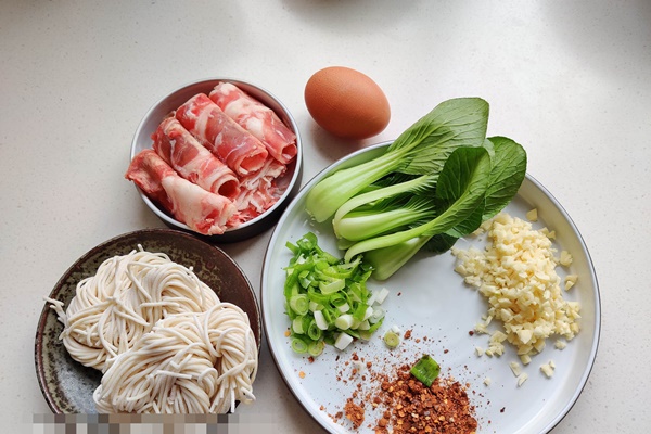 | Mì Thịt bò Trứng Rau cải Hành lá Hành tím Tỏi |