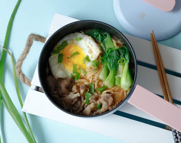 7. Cho thịt bò vào đun sôi lên là dùng được, trước khi ăn cho quả trứng đã chiên và chút hành lá vào ăn cùng. Như vậy, bạn đã thực hiện xong món mì bò vừa thơm ngon, lại bổ dưỡng.