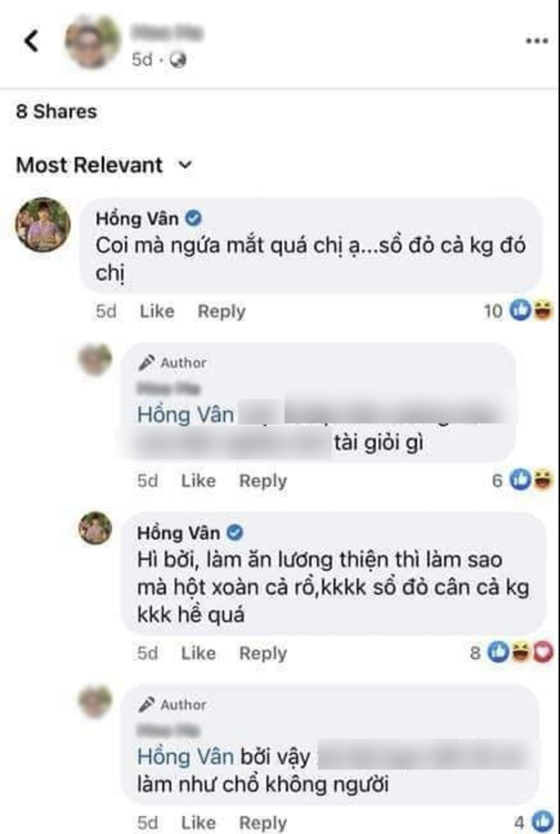 Drama giữa bà Nguyễn Phương Hằng (vợ Dũng lò vôi) và nhiều nghệ sĩ Việt vẫn chưa đi đến hồi kết. Bà chủ Đại Nam nhận về ý kiến trái chiều do cách nói chuyện chẳng kiêng dè ai. Nhân vật mới nhất bị kéo vào loạt ồn ào này chính là NSND Hồng Vân. Chuyện là netizen vừa bắt gặp tài khoản facebook của NSND Hồng Vân và một vị đạo diễn trò chuyện qua lại. Dù không nêu tên trực tiếp song không khó để nhận ra cả hai đang nói về bà Phương Hằng.