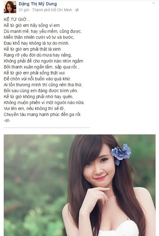 Cách đây ít lâu, người ta bất ngờ thấy Midu ít khi chia sẻ status trên facebook. Tuy nhiên, mỗi lần chia sẻ lại là một dòng trạng thái buồn bã, tâm trạng.
