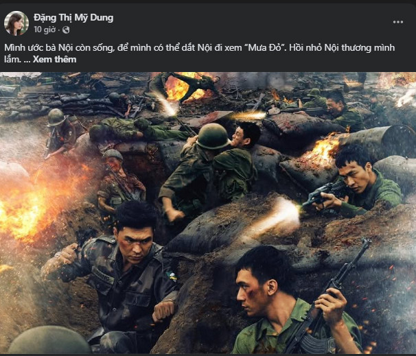 Các bạn nên ra rạp xem phim Mưa Đỏ, để cảm nhận những nỗi đau của chiến tranh, khát vọng hòa bình và 'hào khí dân tộc Việt Nam' được khắc hoạ rất sâu sắc và rõ nét. Cá nhân mình, đây là một bộ phim vô cùng xuất sắc".
