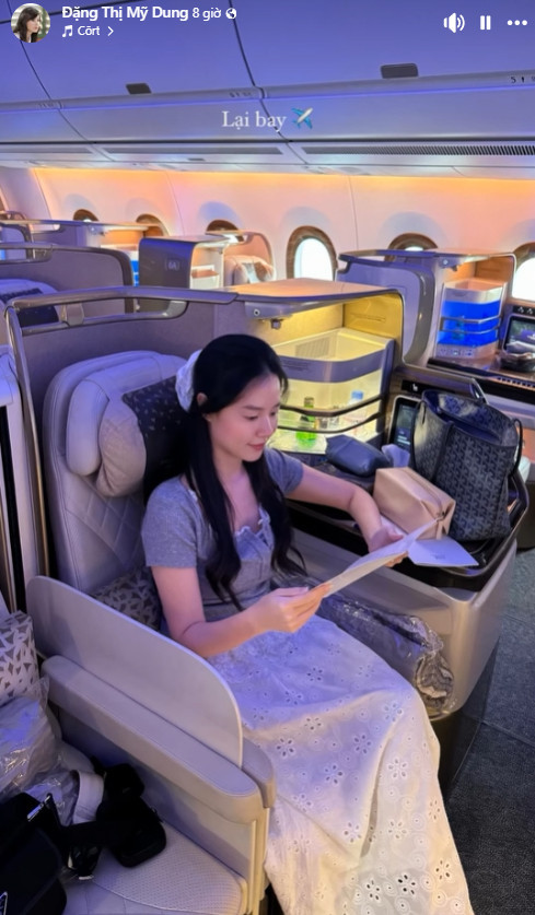 Mới đây trên story Facebook cá nhân, Midu vừa có bài đăng gây chú ý. Cô viết: "Lại bay". Trong hình nữ giảng viên trang điểm nhẹ nhàng, ăn mặc giản dị, ngồi trong khoang hạng thương gia để check-in. Nhan sắc của nàng dâu hào môn tiếp tục trở thành tâm điểm sau loạt nghi vấn bầu bí.