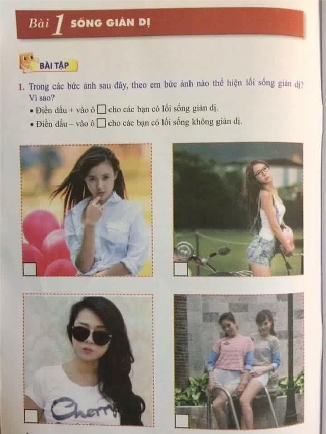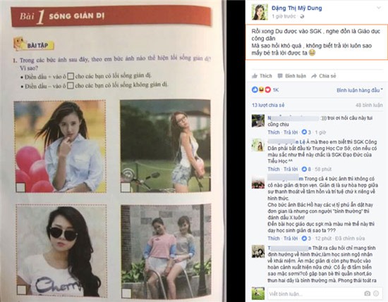 Hình ảnh Midu đẹp dịu dàng được đưa vào sách giáo khoa nhanh chóng nhận được nhiều chia sẻ và bình luận của mọi người. Tuy nhiên, câu hỏi này trong sách giáo khoa cũng gây không ít tranh cãi bởi vẻ đẹp giản dị không chỉ được khẳng định hay thể hiện bằng một tấm ảnh. @Kiều Ngọc Diễm: "Trong cả 4 bức ảnh thì không có cô nào giản dị trọn vẹn. Giản dị là sự hòa hợp giữa sự thanh thoát về tâm hồn và trí tuệ chứ không riêng về hình thức."