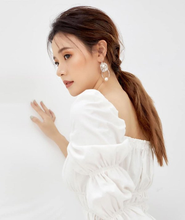 Bên cạnh buông xõa, Midu cũng thử sức với tóc buộc đuôi hoặc búi cách điệu. Nhưng kiểu tóc đòi hỏi sự cầu kì trong việc tạo kiểu này được Midu áp dụng mỗi khi có dịp đi sự kiện, hoặc chụp các bộ ảnh thời trang.