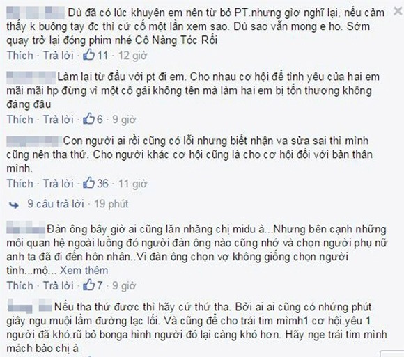 Mới đây, Midu lại chia sẻ status tâm trạng. Nhiều người hâm mộ động viên Midu và khuyên cô nên quay lại với Phan Thành.