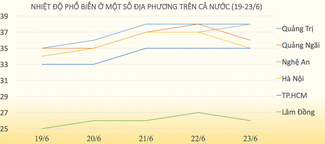 Tại khu vực Hà Nội, từ nay đến 23/6, nhiệt độ cao nhất 35-38 độ C.