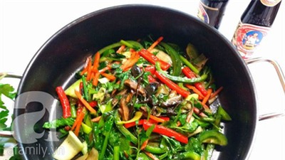 ![]() Ớt chuông xanh đỏ cắt sợi. Mộc nhĩ ngâm nở, rửa sạch rồi cắt sợi. |