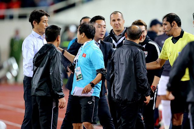Đáng chú ý, trợ lý này còn liên tục có hành động ám chỉ chiều cao khiêm tốn của HLV trưởng đội tuyển Việt Nam. Bị đối thủ khiêu khích, thầy Park đã không giữ được bình tĩnh, định “ăn thua” với đối thủ, rất may đã được trọng tài thứ 4 cùng trợ lý Lee Young Jin của đội tuyển Việt Nam phải vào can ngăn.