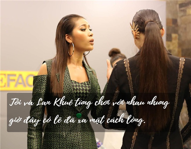 Cho đến giờ mọi thứ vẫn ổn, chúng tôi không ghét bỏ nhau, tất cả vẫn là đồng nghiệp. Trước đây tôi và Lan Khuê từng chơi với nhau nhưng có một thời gian tôi ra nước ngoài hoạt động, Khuê ở Việt Nam nên có lẽ "xa mặt cách lòng". Chúng tôi đi 2 con đường khác nhau, ít có cơ hội nói chuyện, giờ lại gặp nhau tại The Face.
