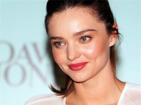 Gương mặt Miranda Kerr được makeup khá đơn giản, da sáng bóng, mắt chuốt mi nhẹ nhàng. Tuy nhiên sắc son mới là điểm nổi bật trên gương mặt.