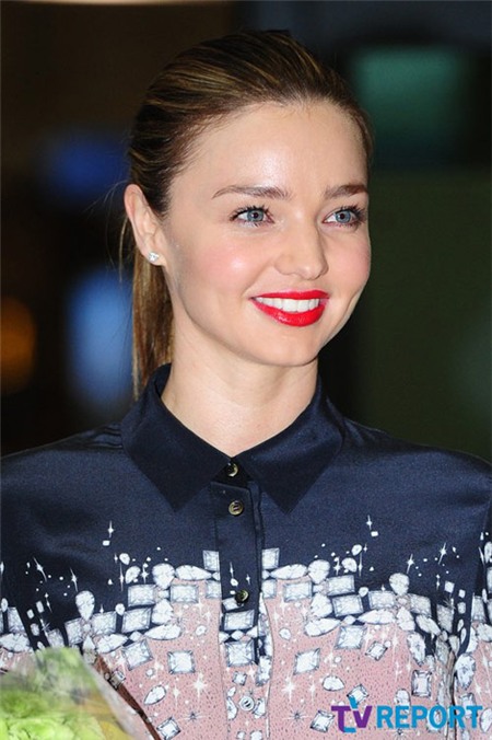 Trong chuyến thăm Hàn Quốc gần đây, siêu mẫu Miranda Kerr khiến công chúng và giới truyền thông trầm trồ khen ngợi bởi ngoại hình và gương mặt cực chuẩn. Bà mẹ một con quyến rũ nhất hành tinh gây ấn tượng với vóc dáng sexy, đôi chân dài miên man và đôi môi đỏ chót lúc nào cũng thường trực nụ cười tươi tắn.