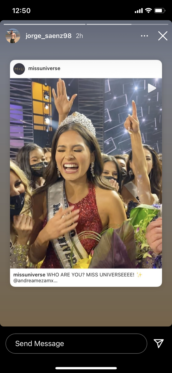 Không chỉ vậy, sau khi Andrea đăng quang, người đàn ông này đã vội vã chia sẻ story chúc mừng "vợ tin đồn" cùng những biểu cảm thể hiện niềm hạnh phúc.
