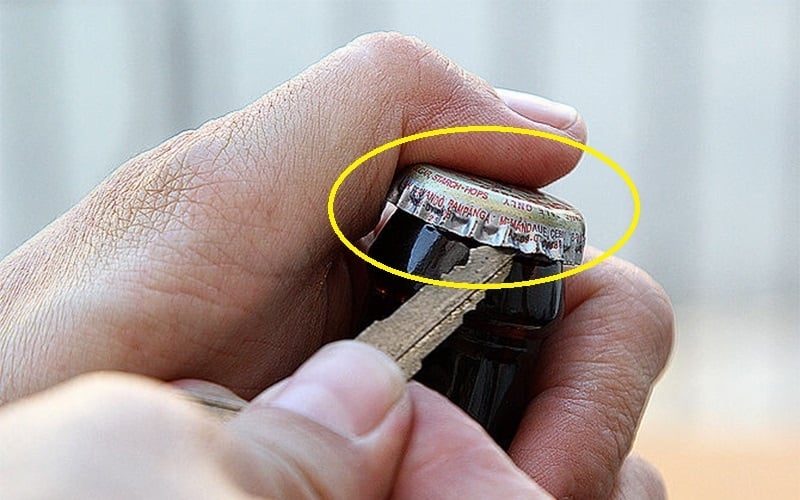 Xung quanh nắp chai có một lớp vòng nhựa kín giúp cho chai bia được bịt kín. Vì vậy, bạn chỉ cần dùng bật lửa để hơ miệng chai trong vài giây, lúc này sẽ có một lượng không khí lọt vào trong chai, vặn nhẹ miệng chai là sẽ mở ra.