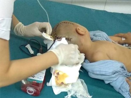 Bé trai 3 tuổi đi học ở trường mầm non bị tụ máu 1/4 não phải mổ cấp cứu