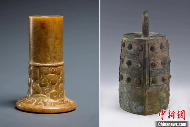 Cụ thể, họ đã khai quật được 16 chiếc chuông đồng bên trên có khắc chữ, nhiều vũ khí và đồ tạo tác bằng ngọc bích. Ngoài ra, ngôi mộ còn có một đế trống bằng đồng. Phần đế có dạng rỗng để lắp trống vào. Nó có chiều ngang khoảng 83cm, với kích thước này, thứ đó được xác định là một trong những đế trống lớn nhất từng được tìm thấy ở Trung Quốc.