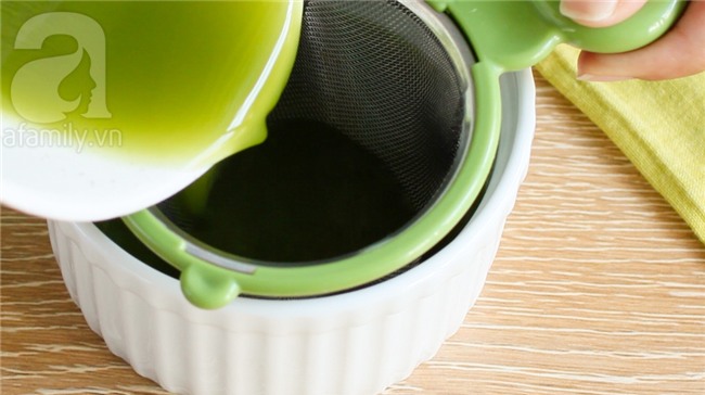 Khuấy tan bột matcha và nước ấm, lọc lại qua rây.