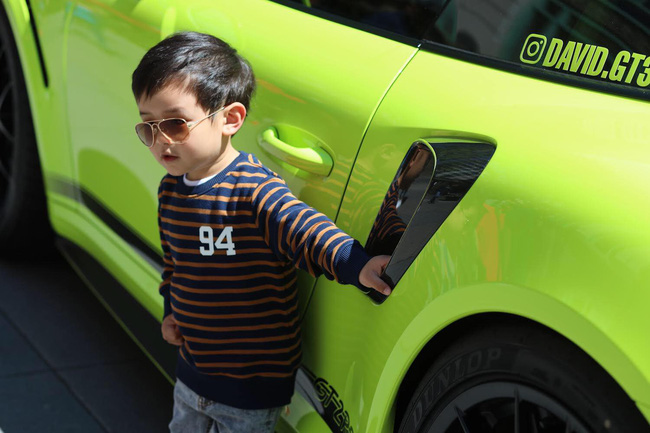 Con trai Đan Trường mân mê, thích thú khi được chiêm ngưỡng loạt xe sang.
