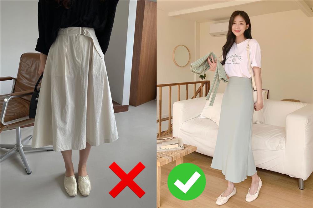 Đây chắc chắn không phải item dành cho những nàng thấp bé và có bắp chân to vì nó sẽ khiến bạn tròn người và lùn đi trông thấy. Nếu vẫn muốn có chút gì đó xòe xòe, hãy tham khảo những chiếc váy midi dáng dài, loe nhẹ ở dưới với màu sắc nhã nhặn như beige, kem hay tông màu xanh lá, xanh mint đang hot hè này. Đồng thời, nếu muốn "hack" chiều cao tối đa, hãy phối đồ theo kiểu monochrome, chọn giày dép và áo cùng tone màu với chiếc váy bạn diện.