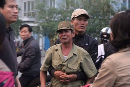 Người đàn ông khóc ngất tại hiện trường khi nhìn thấy thi thể con dâu và cháu nội của mình - (Ảnh: Facebook Đức Thuận). |