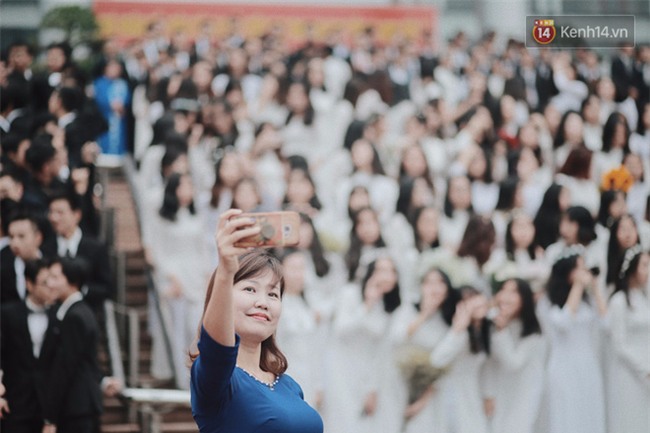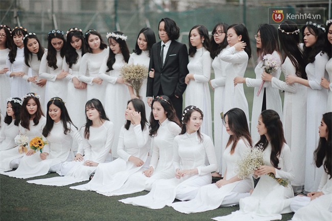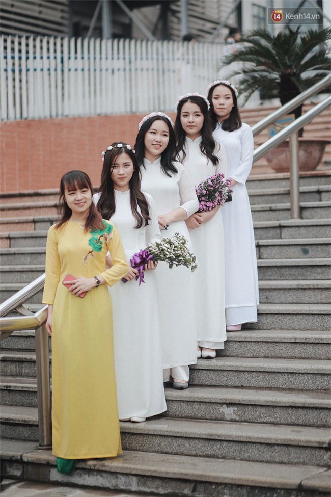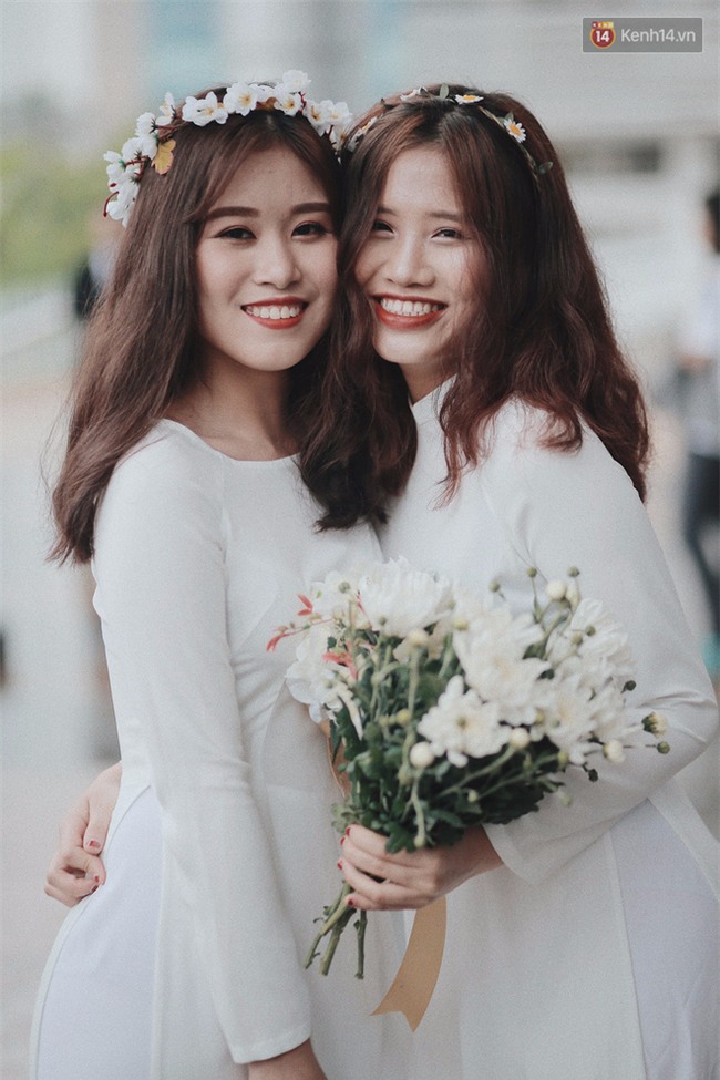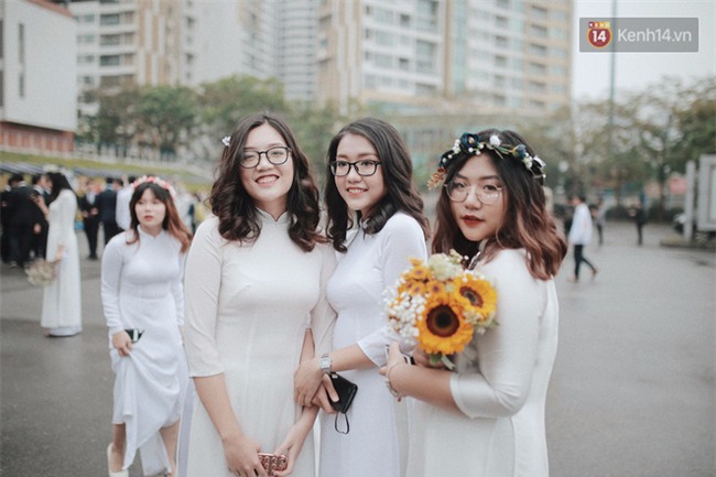 Không còn bộ đồng phục học sinh áo trắng quần xanh ngây ngô, đây là dịp để các nữ sinh xúng xính trong tà áo dài trắng duyên dáng, để các nam sinh chỉnh tề trong bộ com-ple đĩnh đạc. Mỗi năm chỉ có 1 dịp để các cô cậu học trò ăn mặc chỉn chu thế này, cũng là một trong những lần hiếm hoi cả tập thể còn tụ tập đầy đủ bên nhau.