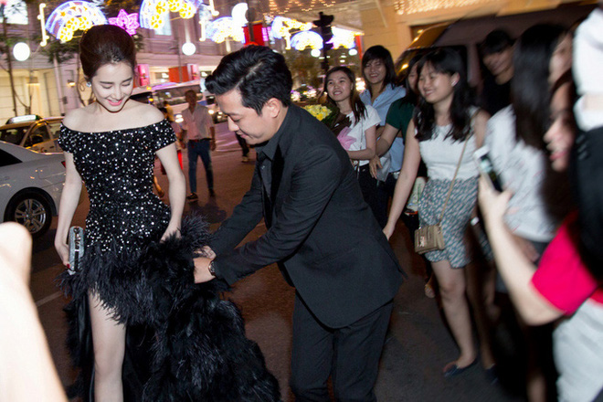 Hình ảnh Trường Giang "nâng khăn sửa váy" cho vợ thế này chắc đã chẳng còn xa lạ gì với khán giả. Dù là ở đâu, trước mặt ai thì Trường Giang cũng không ngại cúi người ôm váy, chỉnh váy để Nhã Phương di chuyển dễ dàng hơn.