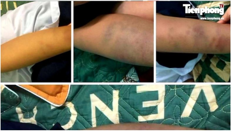 Như Tiền Phong thông tin, chiều 5/10, gia đình đón cháu H. về thì phát hiện trên người cháu có nhiều vết bầm tím ở tay, chân, đặc biệt ở hai bắp chân.. Cháu hoảng loạn và kêu đau. Gia đình gặng hỏi thì cháu trả lời do cô N., giáo viên chủ nhiệm đánh. Gia đình liên hệ thì cô trả lời vào giờ nghỉ trưa, cô đưa các bạn tới phòng ngủ, riêng H. không chịu đọc bài nên cô gọi bạn P. tới kèm cho H. Bạn P. cầm theo cây để vừa chỉ bài vừa đánh theo kiểu gõ nhẹ nếu H. làm sai. Mọi chuyện về sau cô N. không biết.
