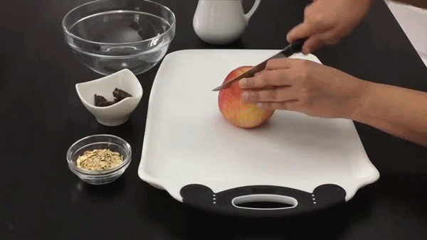 Đổ yến mạch vào bát táo, thêm chà là và sữa tươi vào. Đậy kín bát trái cây yến mạch và để yên khoảng 20 phút.