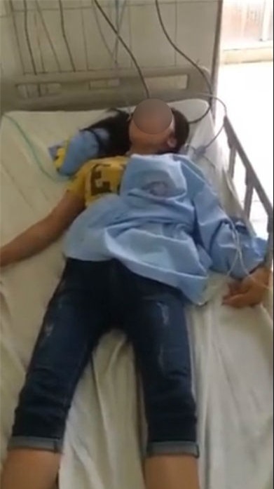 Trong video là hình ảnh cô gái nằm vật vã, bị co quắp chân tay. Xung quanh là một số người đang sơ cứu cho cô gái. Còn người đứng chống nạnh tay với thái độ thờ ơ được cô gái cho biết chính là mẹ chồng của mình.