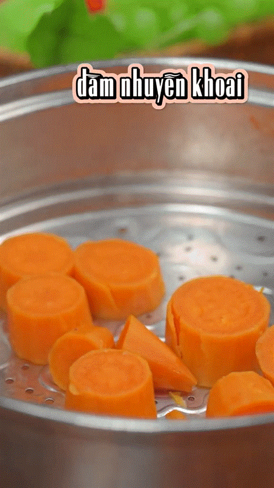 Hấp xong, bạn dùng thìa/dĩa hoặc chày dầm khoai thật nhuyễn.