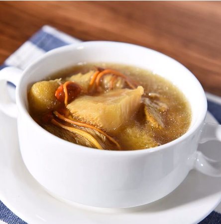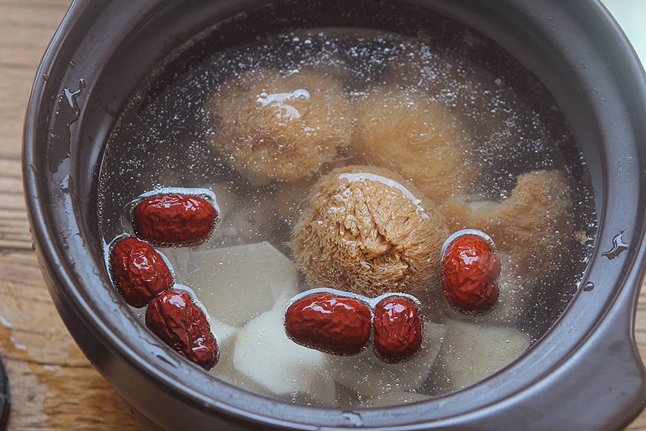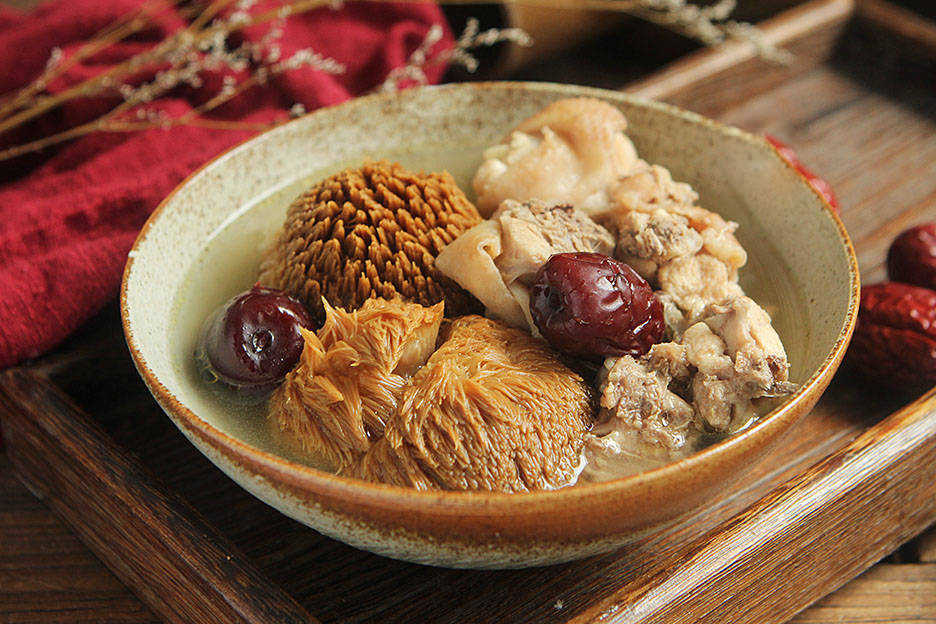 Nấm hầu thủ là một nguyên liệu lạ trong món canh dưỡng sinh này. Nấm hầu thủ được tiêu thụ mạnh ở thị trường Bắc Mỹ và Trung Quốc bởi lợi ích mà chúng mang lại. Nấm hầu thủ tươi có vị thanh nhẹ nhưng không nhạt nhẽo, phảng phất vị ngọt tự nhiên của nấm.