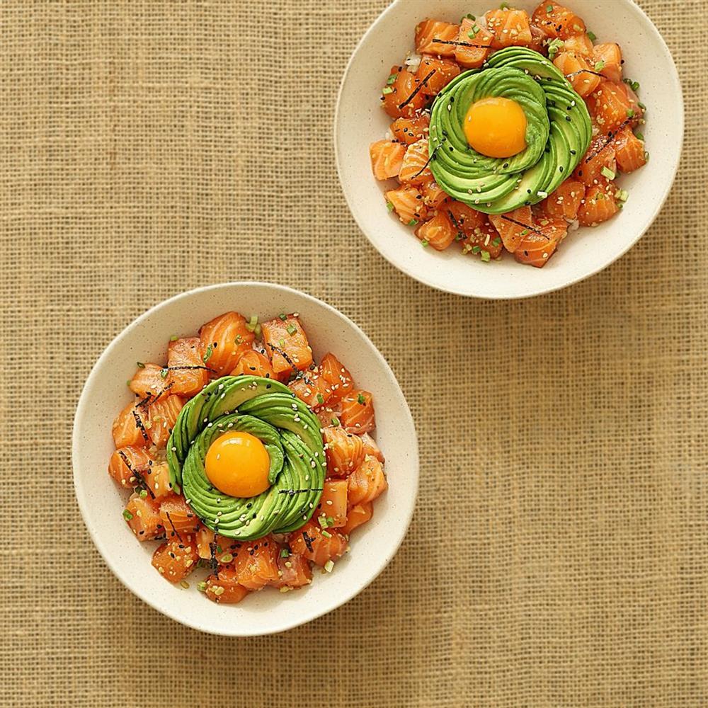 Một đĩa cơm cá hồi trộn ăn kèm với bơ vừa ngon miệng, bổ dưỡng. Món ăn có vị thanh mát, tươi ngon của cá hồi mà cách chế biến không cầu kỳ chút nào. Món ăn cũng rất đẹp mắt, kích thích vị giác. Bạn có thể chế biến món ăn này cho bữa trưa hay bữa tối bận rộn mà vẫn đảm bảo bữa ăn chất lượng cho cả nhà.