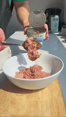 Bạn lấy phần thịt cá ngừ ra khỏi hộp và dùng thìa miết qua rây lọc để loại bỏ hết phần dầu ngâm. Sau đó, cho cá ngừ vào bát cùng 1 thìa canh sốt mayonnaise, 1 thìa canh tương ớt, 1/2 thìa canh nước tương. Trộn đều các nguyên liệu.
