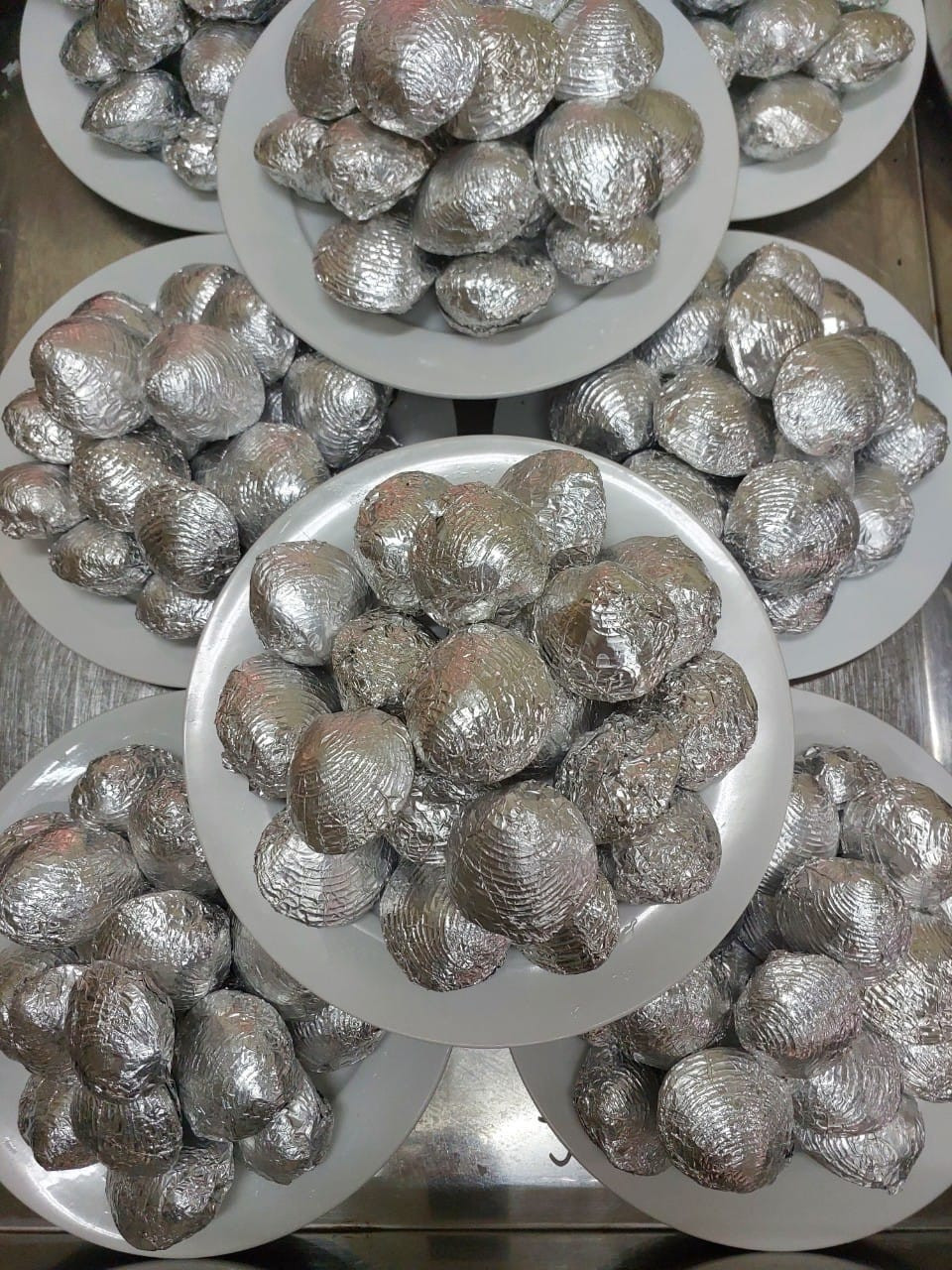 Ngán có thể chế biến nhiều món nhưng món phổ biến nhất trong mâm cỗ ở Quảng Yên là ngán hấp giấy bạc, vừa thẩm mỹ, vừa ngon, lại nhanh chín.