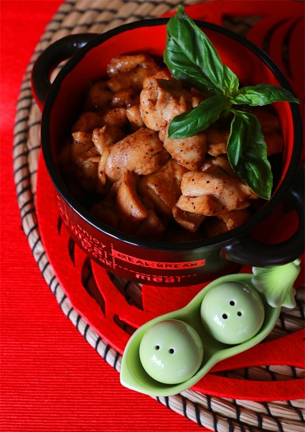 500g thịt gà 20g rau quế 2 muỗng canh nước sốt tiêu đen 2 muỗng cafe tiêu xay 2 muỗng cafe muối 1 muỗng cafe bột bắp 1 muỗng canh dầu ăn |