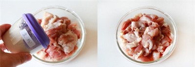![]() | ![]() Tiếp đến cho bột bắp vào thịt gà rồi trộn đều lần nữa. |