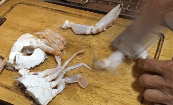 4. Dùng dao đập dập càng ghẹ đẻ thuận tiện cho việc chiên.