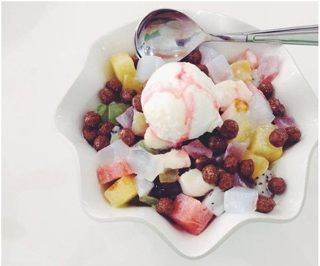 Cùng với những món cay xé lưỡi, patbingsu – Đá bào Hàn Quốc như một mảnh ghép còn lại của ẩm thức xứ kim chi, còn gì thú vị hơn xì xụp những món cay nồng rồi tráng miệng với món mát lạnh “tê tới đỉnh”. Trái cây tươi ngon hòa quyện cùng vị mát lạnh, ngọt béo của kem cùng cái bùi bùi, thanh ngọt của đậu đỏ tạo nên sự kết hợp lạ miệng khó có thể chối từ. Quả là một loại kem ngon, khá phù hợp với thời điểm lạnh nhất trong năm tại Sài Gòn. Ngoài ra, các teen có thể thưởng thức các loại patbingsu vô cùng phong phú như: patbingsu trái cây, patbingsu trà xanh, patbingsu cà phê,…