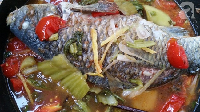 Cho cá chép om dưa vào đĩa, ăn kèm với các loại rau thơm. Vị ngọt của cá, chua thanh giòn của dưa, hơi cay đầu lưỡi của ớt sẽ khiến ai ăn cũng phải tấm tắc khen ngon.