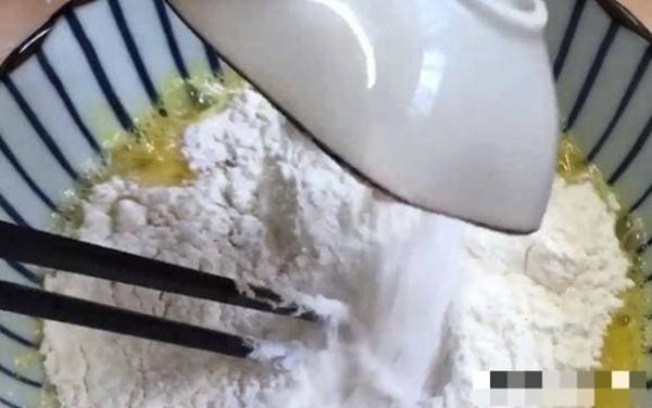 Bước 3: Tiếp theo chúng ta đổ bột mì gluten vào khuấy đều đến khi bột gluten tan hết vào trong hỗn hợp trứng.