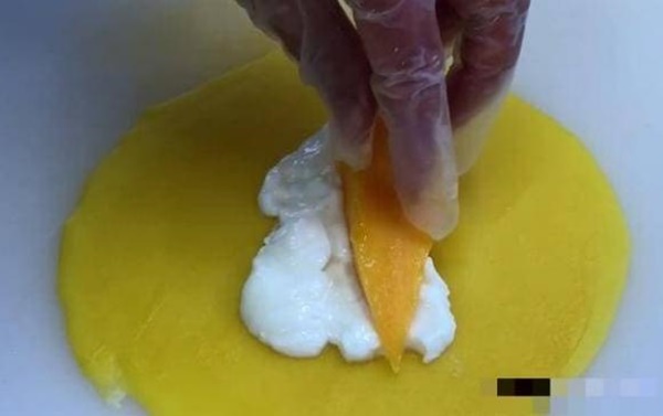 Bước 7: Sau đó, trải miếng vỏ bánh vừa chiên lên thớt rồi cho lần lượt sữa chua, xoài và gói lại 4 phía và thưởng thức. Bánh sau khi gói bạn có thể đem cho vào tủ lạnh rồi mới ăn sẽ mát hơn.